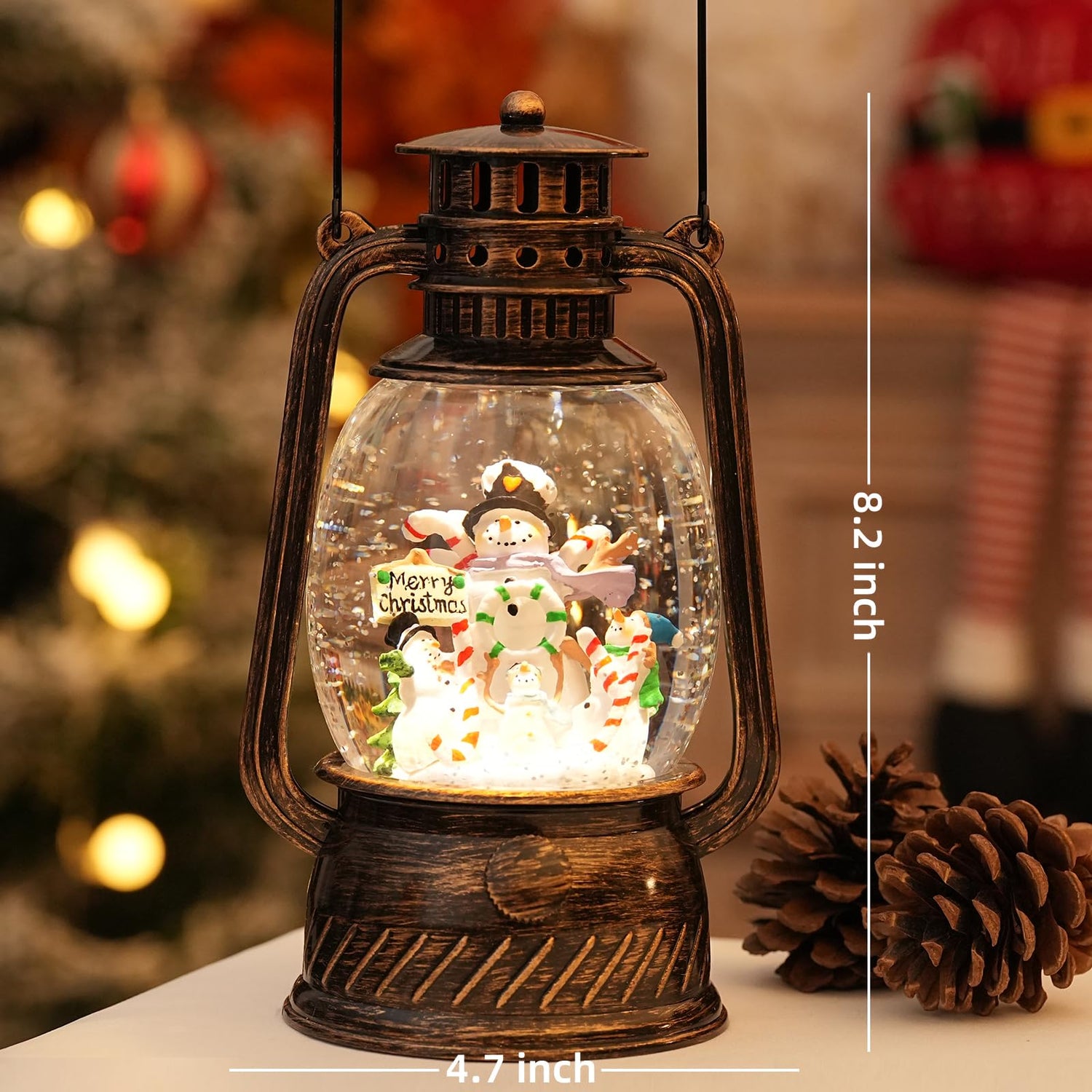 Snowman Snow Globe Christmas Decorations, Light Up Musical Christmas Snow Globes Lantern with Glitter & 6H Timer, Joy Snowman Christmas Decorations Gift for Home
